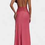• Дълбок халтер изрез, който стилизира и подчертава деколтето с елегантност