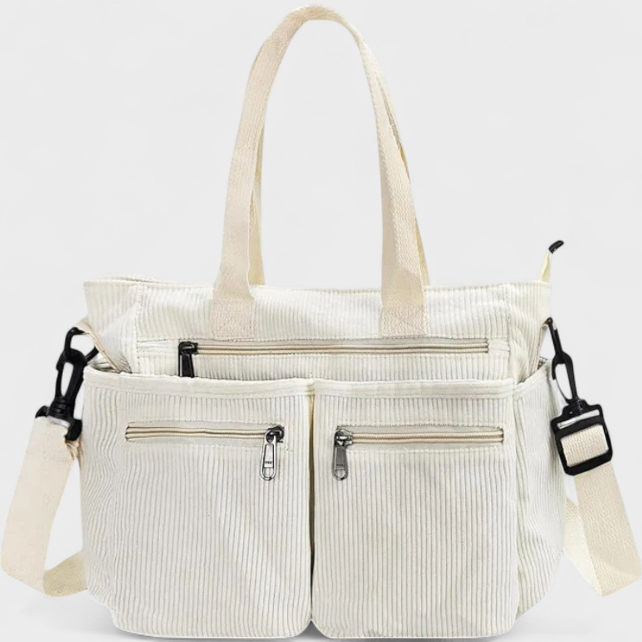 Допълнете ежедневния си вид с чантата Urban Cord Tote. Тази модерна чанта съчетава стил и функционалност и е перфектна за вашия забързан живот. Независимо дали отивате на работа, на училище или на разходка, тази чанта има достатъчно пространство за всичките ви важни вещи и добавя стилен акцент на външния ви вид.