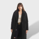 Това дълго теди палто за жени съчетава топлина, комфорт и елегантност в една дреха. Неговият ултра мек плюшен материал те прегръща с уютно усещане, идеално за най-студените зимни дни. Дългият му кройка и модерен дизайн добавят съвременен щрих, който подчертава всяка визия, от неформална до шик.
