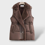 Елегантен дамски пухкав жилет с регулираща се талия
