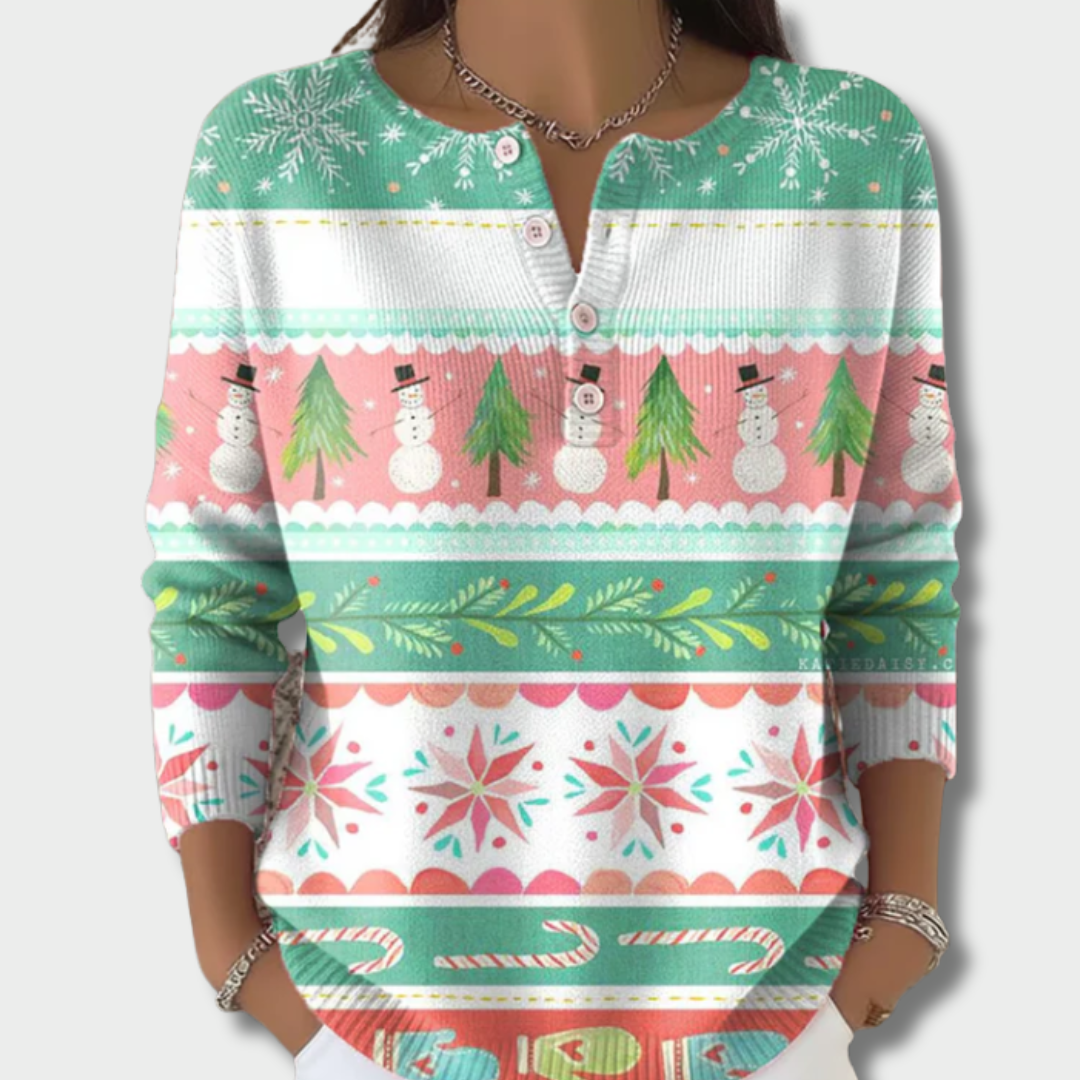 Пуловерът Лоте е идеален за тези, които обичат уютен, цветен коледен стил с нотка носталгия.
