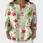 Пуловерът София моментално носи коледно настроение в дома с игривия си принт на подаръци, коледни дървета и зимни детайли. Меката смес от трикотажен памук осигурява приятно топло усещане, докато закопчаването с копчета при врата добавя изискан акцент.