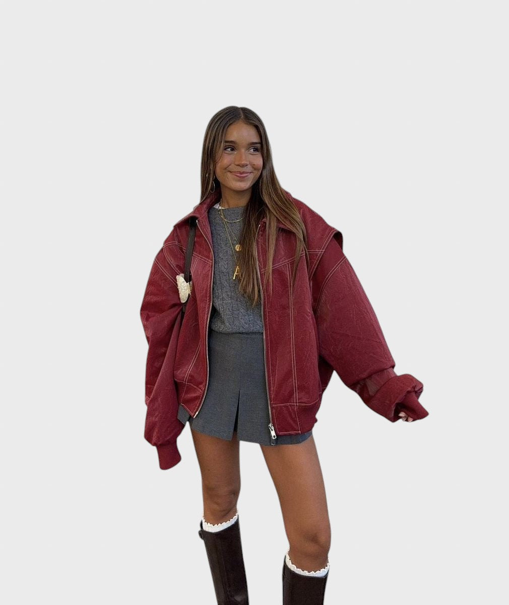 Червеното е цветът на сезона, а това кожено палто е точно това, от което се нуждаете, за да се откроите! Перфектна комбинация от мода и непреходност, това палто издига всяка визия на следващото ниво и ви прави истински законодател на модата. Независимо дали се обличате небрежно или елегантно, това палто винаги ще бъде на мода!
