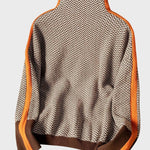 Този пуловер с контрастни райета предефинира баланса между топлина и стил със своя впечатляващ дизайн . Докато много пуловери се придържат към основните елементи, този се откроява със смелия си модел и ласкателната си кройка. Той е перфектният стилен и универсален избор за всеки повод, независимо дали сте в офиса, на разходка или на спокойна вечер.